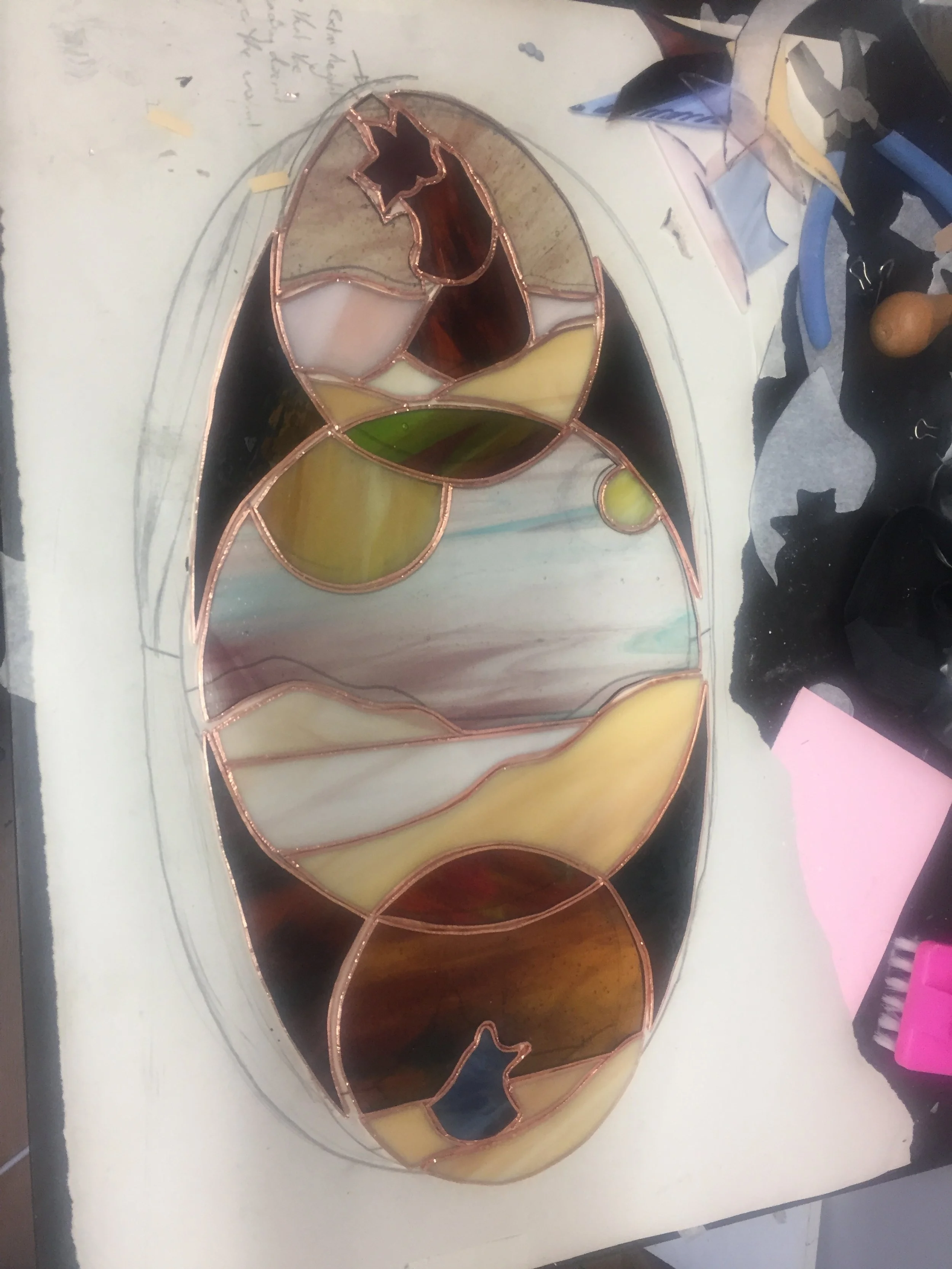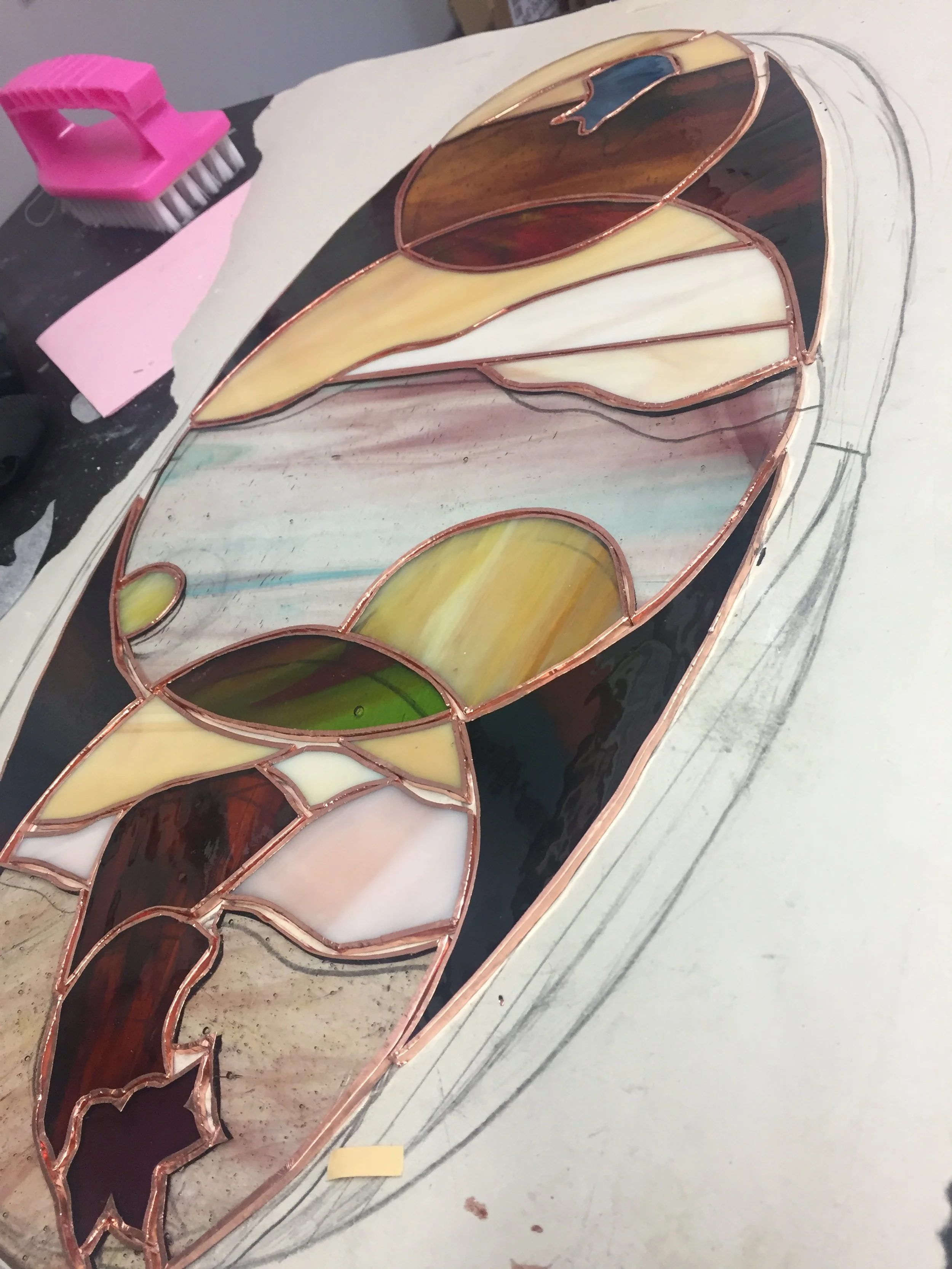 We love these guys and have made many a different Korok over the years. Taking the opportunity to create smaller pieces and to use wire work to create the stem of the flower that they hold to the side of them. We also created smaller bits of glass that are just cut into specific leaf shapes in order to paint them. We also turned one of them into a garden ornament as a commision